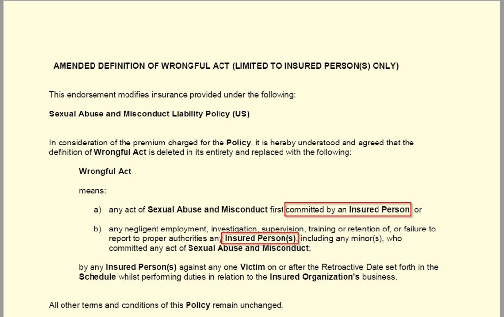 So, this endorsement turns such a policy into coverage only for misconduct by your own staff or your organization’s negligence related to your own staff. Anything involving third parties or child-on-child situations is excluded. However, some carriers will not limit their coverage as shown above. If you are looking for SAM Insurance for a special event or a full annual policy, contact us and we will be happy to provide you with an option that fits you best.